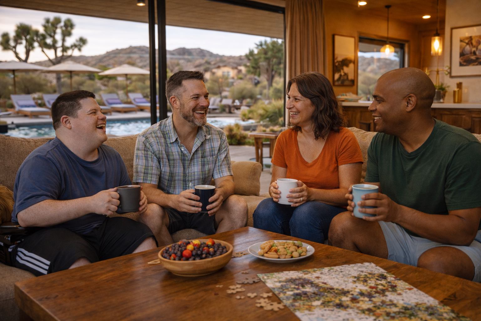 Time in and around Joshua Tree National Park is approached gently. This may include scenic drives, accessible viewpoints, or short walks where individuals can experience the landscape without pressure or fatigue.